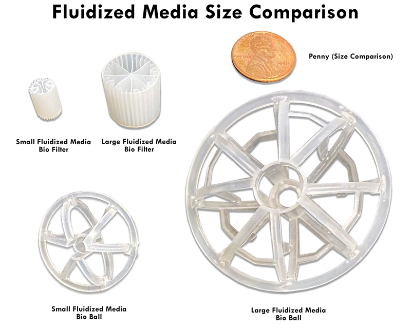 Self-Cleaning, Low Maintenance Media – Continuous motion sheds older bio layers and prevents clogging, reducing the cleaning required compared to foam, mats, or lava rock.
